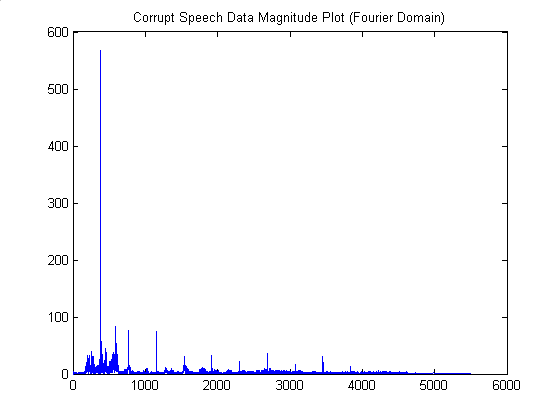 In this laboratory exercise, three different techniques were used to eliminate a 400Hz signal from a captured speech signal. To begin with, the magnitude of the noise signal was subtracted from the magnitude of the corrupt voice data in the Fourier domain (based on the Discrete Fourier transform), to yield a resultant magnitude plot A. The phase of the corrupted signal was then added to A to yield a signal whose inverse Fourier transform comprised a cleaner/filtered speech signal. The second technique, the adaptive notch filter, cleaned up the corrupt voice data by first blurring the noise signal by convolving it with a 1-2-1 Gaussian filter. Points on the magnitude plots of the blurred noise data (in the Fourier domain) that exceeded a specified threshold were then used to determine the values of the corrupt signal that had to be multiplied by some factor to reduce noise. The third technique cleaned up the corrupt voice data by removing the specified frequency (400Hz) and its harmonies.