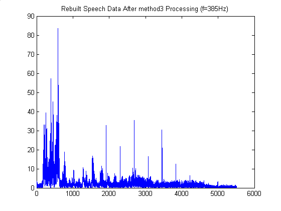 Both the second and third methods seemed to have worked well in recreating the original voice recording. Unfortunately, the resulting cleaned-up signal from method 1, which theoretically was the most accurate method, was not very effective. This was because the dominant noise frequency in the voice signal did not match the frequency of the noise signal itself. We suspected that this was simply due to slight variations in the function generator. When subtracting the magnitude of the noise in the Fourier Domain, the large spike in the corrupt sound was not removed since the frequencies did not line up correctly.