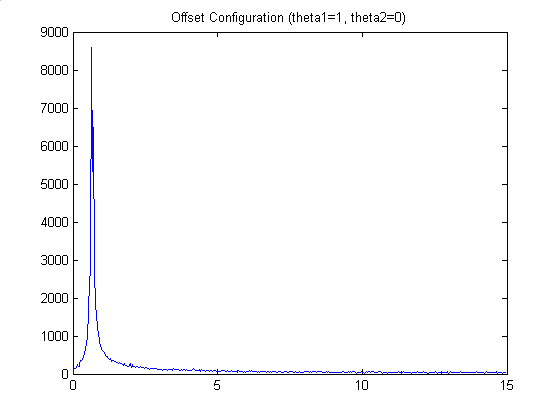 The main significance of our results are that any motion of the pendulum system can be described using a combination of the coupled and parallel motions. This can be seen in our offset graph in the frequency domain where the peaks at two different frequencies. The peak at about 0.6 Hz is the result of the parallel motion in the system and the peak at about 0.7 Hz is the result of the coupled motion in the system. We know this because the frequency of the oscillation of the pendulum with the masses offset in the same direction was about 0.6 Hz and with the masses offset in opposite directions was about 0.7 Hz. Therefore, the peaks at 0.7 Hz and 0.6 Hz show that when only one of the masses is offset, the motion of the system is a combination of the parallel and coupled motions.