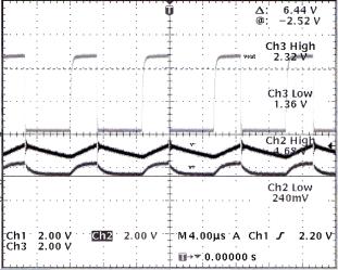 The measured time per transition from the above oscilloscope image shows a period of about ~6 uSec. The calculated period was 8.06x10^-6, or ~8 uSec. The theoretical and measured periods are essentially the same, and the variation in the experimentally obtained value could easily be a result of resistor tolerances.