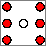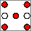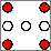Digital TTL logic circuitry was used to simulate a random die. A high frequency TTL input clock signal from the breadboard stepped a 4-bit timer, whose output was passed through a set of logic gates to turn the appropriate LEDs on or off. Since some LEDs are always used in pairs, only four outputs O1…O4 were needed from the circuit. Since TTL logic chips can sink more current than they can source, a logic 0 output turned an LED on through a 1k pullup resistor, while the logic 1 state effectively turned the LED off. The configuration of the LEDs is shown below in Figure 1.