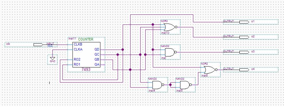 turned on (in reality pulled to 0) for the various counter values. Note that the counter resets when it reaches