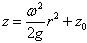 The constant pressure surface equation can be rewritten to determine the angular rate of rotation from a radius and various z values as follows: