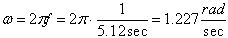 The rotational frequencies were measured to be 5.12 seconds per rotation for the slow speed, and 2.11 seconds for the fast speed. For the slow rotation, we calculate w as follows: