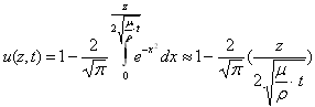 The way in which the fluid in the tank actually spins up to a solid body rotation from stationary state cannot be solved in closed form. The Rayleigh problem exhibits much simpler geometry but still provides insight into what might be happening. Suppose a body of liquid represented as a stack of finite "sheets" of fluid that interact via shear forces on their adjoining surface areas. When the surface upon which the fluid rests begins moving, each layer of liquid pulls on the one above it, causing the whole fluid body to eventually move. The solution to this problem is a second order differential equation known as the diffusion equation. Solving the diffusion equation yields the Complementary Error Function, given as