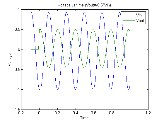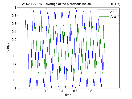 Graph 9 . 10 Hz signal and output (average of the five previous inputs).