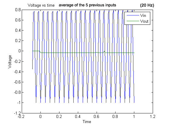 Graph 10 . 20 Hz signal and output (average of the five previous inputs).