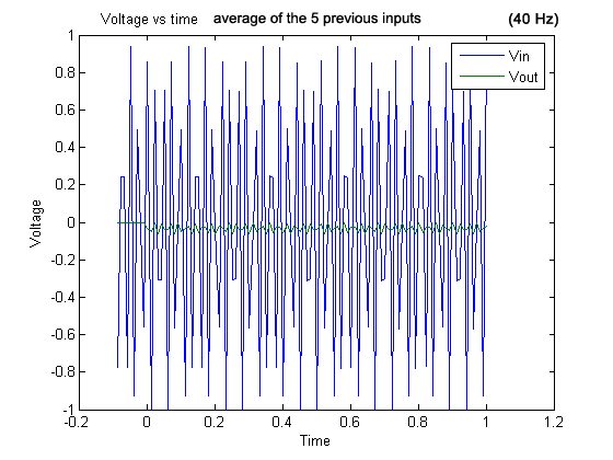 Graph 11 . 40 Hz signal and output (average of the five previous inputs).