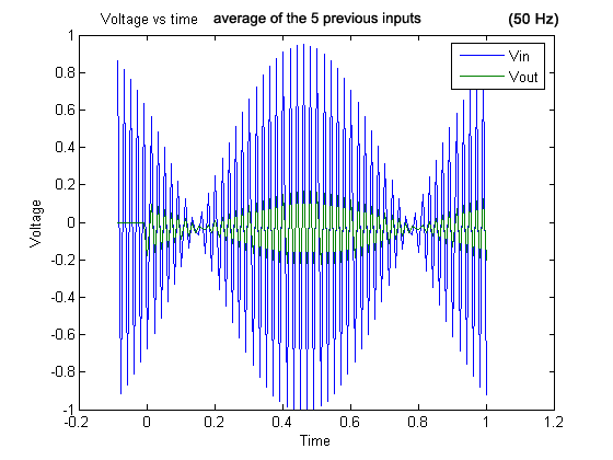 Graph 12 . 50 Hz signal and output (average of the five previous inputs).