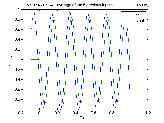Graph 8 . 5 Hz signal and output (average of the five previous inputs).