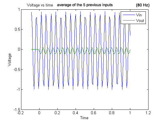 Graph 14 . 80 Hz signal and output (average of the five previous inputs).