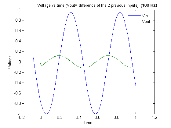 Graph 22 . 100 Hz signal and output (difference of the two previous inputs).