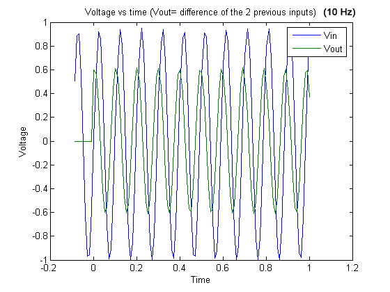 Graph 16. 10 Hz signal and output (difference of the two previous inputs).