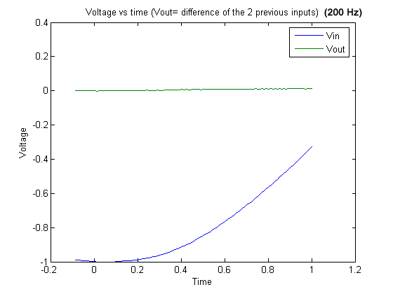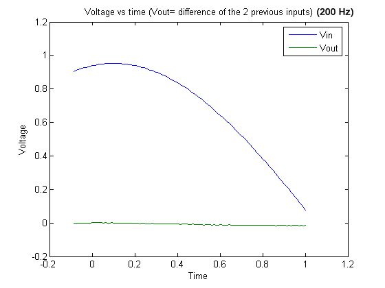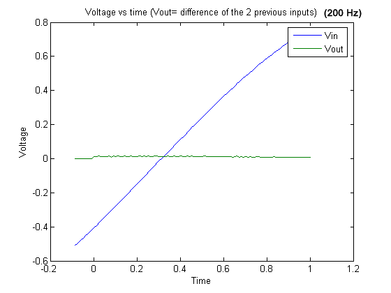 Graph 27 . 200 Hz signal and output (difference of the two previous inputs).