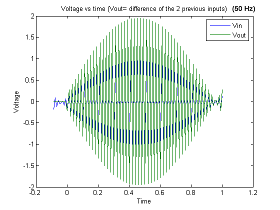 Graph 19. 50 Hz signal and output (difference of the two previous inputs).