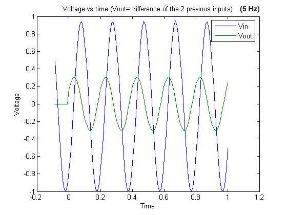 Graph 15. 5 Hz signal and output (difference of the two previous inputs).