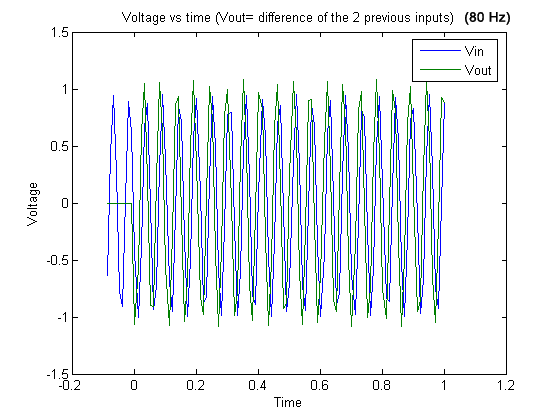 Graph 21 . 80 Hz signal and output (difference of the two previous inputs).