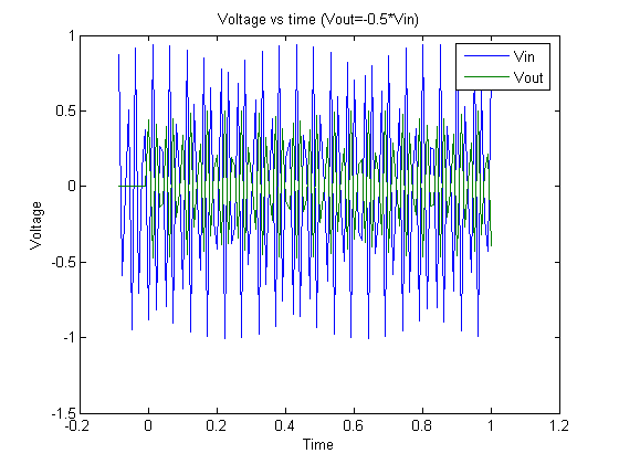 The acquired graphs match our expectations. For the 20 Hz signal we expected to get a straight line because as seen in figure 1 every new sample was supposed to match the signal being omitted from the inputs that we averaged. In figure 1 every colored box represents a group of 5 samples, and as you (prof.Cheever) may readily observe, the average of the samples in every box is the same.