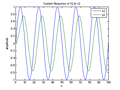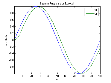 For low frequency inputs (x1), the system response acts well to pass the low frequency component as seen in the first graph. However, a slight delay is observed due to the phase shifting from the filter.