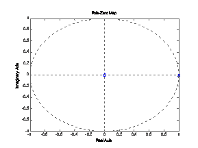 All of the zeros are on the frequency axis (unit circle). Since s1 and s2 are ultimately the same transfer function algebraically, all of the poles and zeros should be the same. For s2 however, we notice a pole and zero at z = 1 that does not appear in for s1. We suggest that this pole and zero simply cancel, and that their appearance is a result of whatever mechanism MATLAB uses to plot the pole-zero maps from the transfer function.