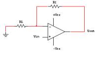The manufacturer's slew rate specification for the LM411 is 15 Volts / usec. With a feedback resistor of 30 k, the voltage transition from +10V to -10V took 960ns, giving a slew rate of 20V/0.96usec = 20.83. Using a 10k feedback resistor, the slew rate was measured to be 10/1.44 = 6.94 V/usec. The input resistor in both cases was 10k. This data is interesting because it seems reasonable that since the slew rate is the ratio of the voltage drop to the time required for the transition, the slew rate should be independent of the gain. For the -3 gain circuit, the slew rate was far higher than for the circuit of -1 gain. This is probably due to the point at which the time measurements were made for the smaller gain circuit. Looking at the oscilloscope printout, the circuit overshot the target voltage of -5 V on the transition and oscillated slightly before stabilizing at -5V. Our measurement was taken from the start of the transition to where the output voltage appeared stable. Had we measured to the minimum peak voltage value, the time would have been about 0.7 usec, resulting in a slew rate of 14.28 V/usec, which is in much greater accordance with the manufacturer's specification.