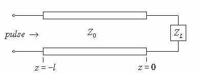 Initially, the pulse sees just the characteristic impedance of the line, as it has not yet reached the load impedance. When the pulse reaches the end of the line, it sees the load impedance ZL and reflects if the load is not perfectly matched to the line. As such, there is a pulse that