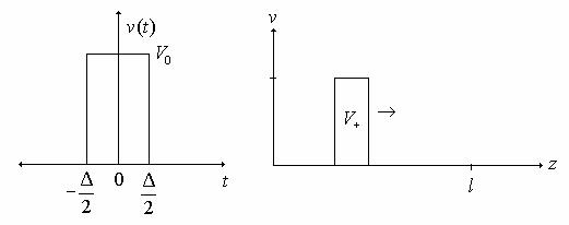 We can now consider the case of transient waves on a transmission line by looking at the response of a line to a short pulse. Consider an input pulse of the form shown below traveling down a line in the +z direction.