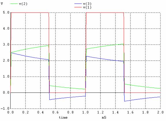 Figure 2. Plot of Voltages at Nodes 1, 2, and 3 using SPICE