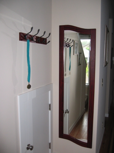 Padauk Wall Mirror and Matching Coat Hooks, Winter-Summer 2005